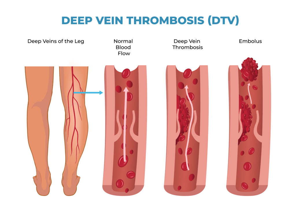Blood clots can form when blood flow slows down or changes. There are many reasons why someone might get Deep Vein Thrombosis. Some common causes and risk factors include: